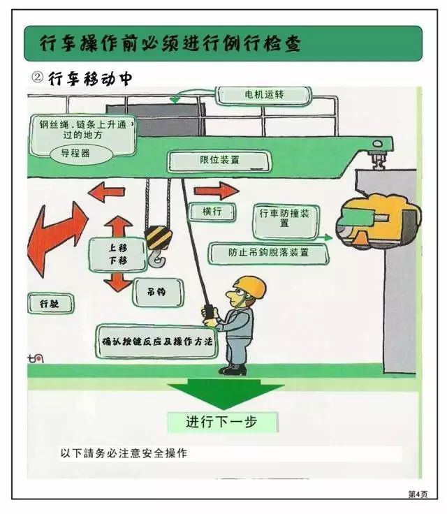 車間里很多都有行車,行車操作環(huán)節(jié)很重要,存在操作失誤及設(shè)備出現(xiàn)故障的可能性,存在造成人員傷亡和物資損壞的風(fēng)險(xiǎn),今天咱們讓老王在車間演示一遍,看看有哪些注意事項(xiàng)!